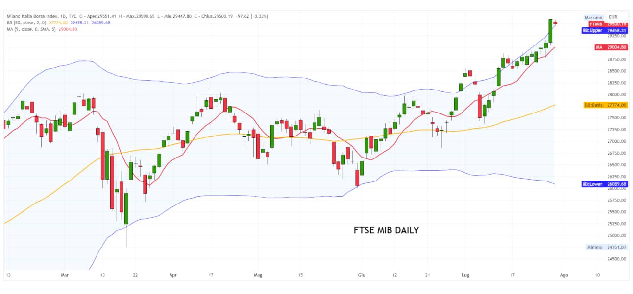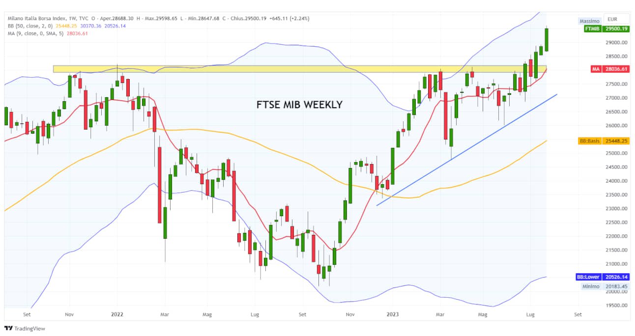 Der Ausbruch über 30.000 Punkte wird eine neue Demonstration der Stärke darstellen und weiteren Raum für Wachstum eröffnen (mit theoretischen Zielen zunächst im Bereich 30.280-30.320 und später in Richtung 30.500 Punkte).