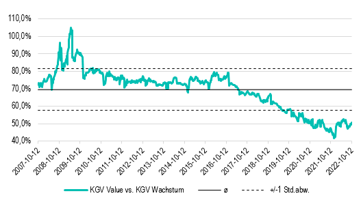 – Historisch gesehen ist Value im Vergleich zu Wachstum immer noch günstig
