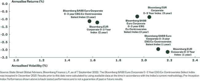 Abbildung 2: Geringere Volatilität des Bloomberg SASB Euro Corporate 0-3 Year ESG Ex-Controversies Select Index