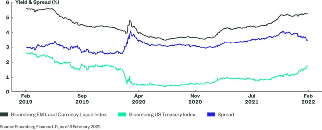 Stabilität in Verbindung mit Renditeniveaus, die auf dem höchsten Stand seit Mitte 2019 sind, sollten das Vertrauen stärken, dass sich EM-Lokalwährungsanleihen im Jahr 2022 gut entwickeln können, wenn die Inflation zu sinken beginnt. Für Anleger, die weniger zuversichtlich sind, dass der Inflationsdruck nachlässt, können indexgebundene Anleihen einen gewissen Schutz bieten.