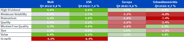 – Insgesamt haben sich die Faktoren für globale und US-Anleger gut entwickelt. Nur Growth schnitt im 4. Quartal unterdurchschnittlich ab.