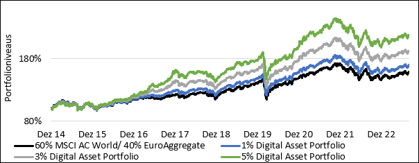 Abbildung 1: Das Portfolio mit digitalen Assets schnitt besser ab als das traditionelle 60:40-Portfolio