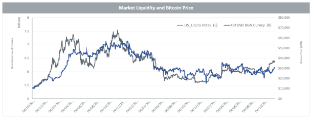 Abbildung 2: Marktliquidität und Bitcoin-Preis